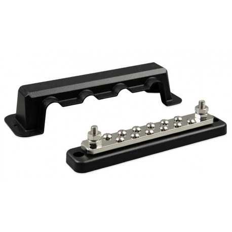 DC prípojnica pre použitie na distribúciu vysokého DC prúdu. Slúži na pripojenie napríklad batérie pomocou matíc a ďalších dvanásť DC zariadení pomocou skrutiek.