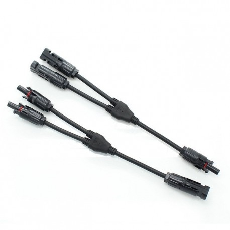 Tieto dva zlučovacie káble, umožnia spojiť dva plusové a dva mínusové konektory MC4, vedúce od solárnych panelov do jedného kábla, ktorý je možné pripojiť priamo na regulátor ap.